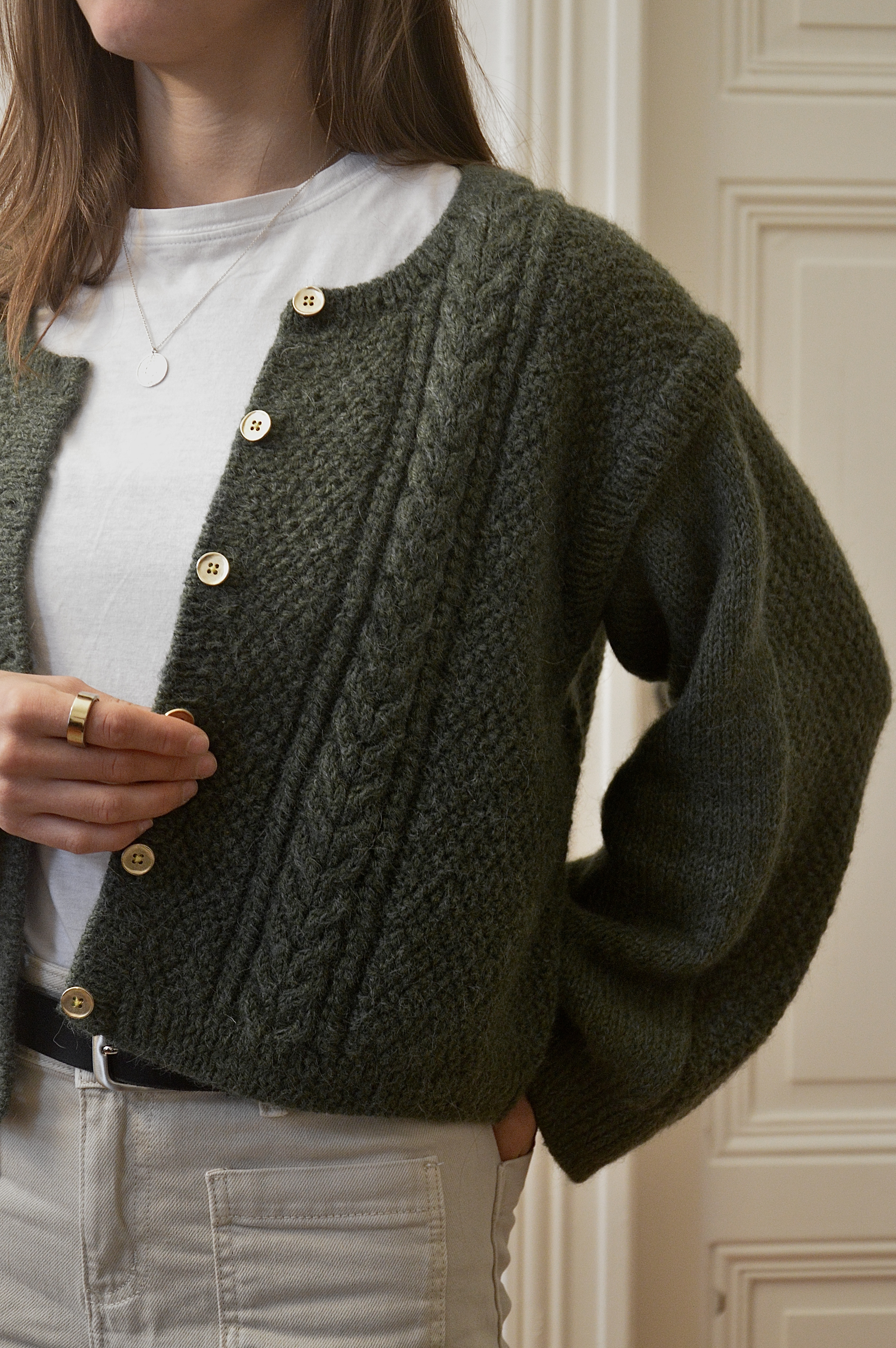 The Martha 2-in-1 Jacket is a timeless design with a deeply personal history. Originally created over 25 years ago by my great-grandmother, the piece has been lovingly reworked and translated into a modern knitting pattern — one I myself wore as a child. The design features a refined zip-off construction, allowing the sleeves to be removed and worn either as a classic cardigan or an elegant vest.